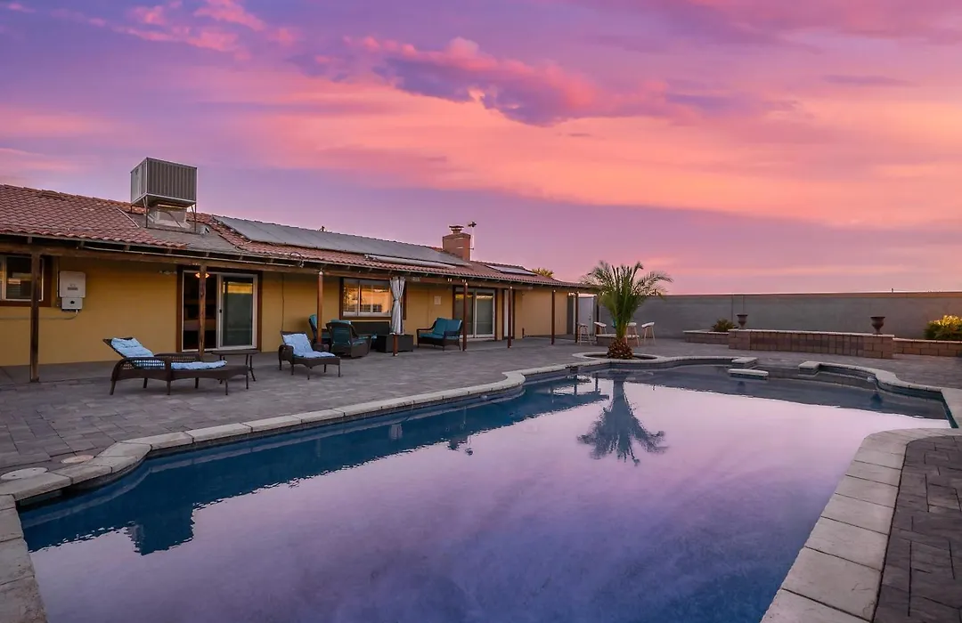 In Ranch Style Home With Pool, Hot Tub, Bbq Near Strip kunt u genieten van het uitzicht op de tuin.